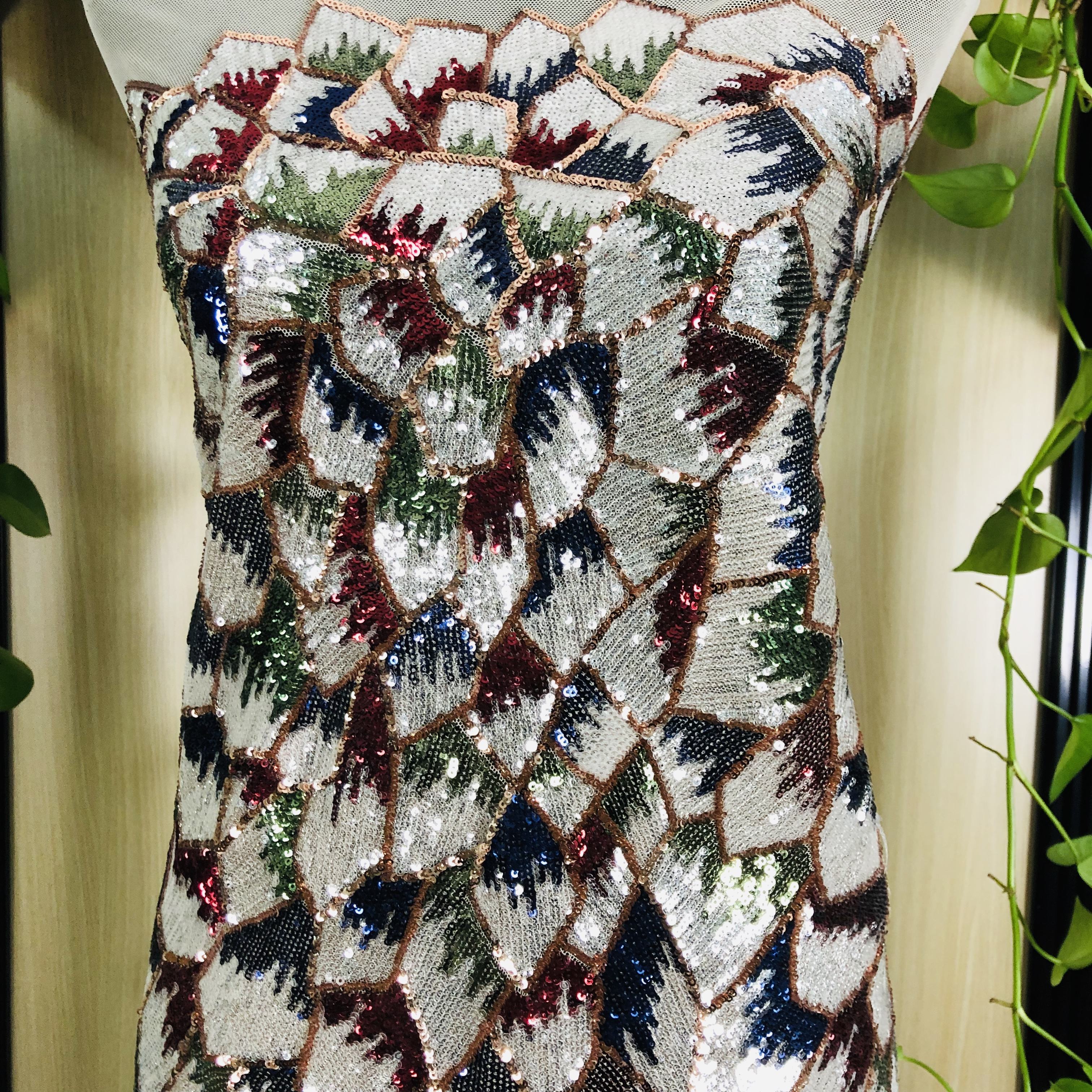 Uus kaunis populaarne hulgimüügi tikanitseriiete kangas võrgusilm peen kolmemõõtmeline tikand koos läikivate litritega, see on kerge ja hingav, mis sobib eritellimusel valmistatud pulmakleitideks, õhtukleitideks, lavaetenduse kostüümid ja tipptasemel mood. See pakub moedisaini vajaduste rahuldamiseks mitmesuguseid värvivalikuid.