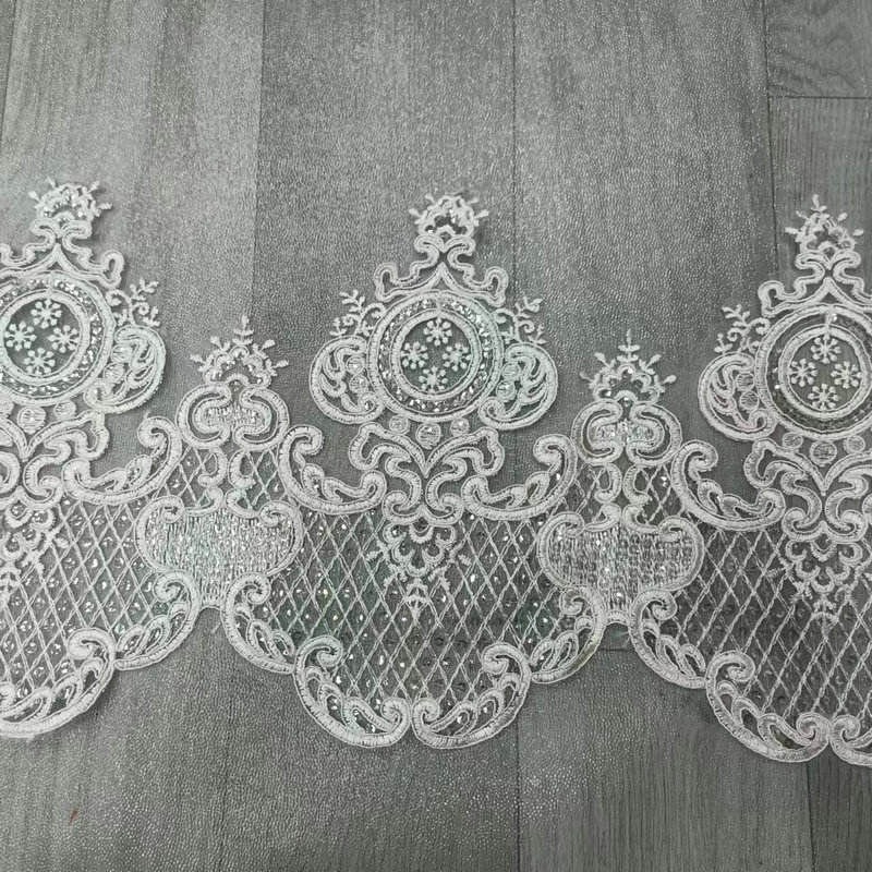 Luksuslik valge pruudi prantsuse pitsiga tikitud pruudi pitsist trimmimist pulmakleidi jaoks koos tipptasemel prantsuse pitsibaasiga, peen kolmemõõtmelise tikkimisega käsitöö ja puhta valge tooniga, see õhutab elegantsi. Täpsemalt eritellimusel valmistatud kaunistused, mis on spetsiaalselt pulmakleitide ja õhtukleitide jaoks, millel on õrnad ja keerulised mustrid, valguse ja nahaalustav tekstuur, tugi laiuse ja mustrite kohandamiseks, mis tõlgendab suurepäraselt romantiliste ja luksuslike pruutide esteetikat. Tipptasemel prantsuse pitsibaasi, peene kolmemõõtmelise tikandimeisterlikkuse ja puhaste valgete toonide abil eraldab see elegantsi. Täpsemalt eritellimusel valmistatud kaunistused, mis on spetsiaalselt pulmakleitide ja õhtukleitide jaoks, millel on õrnad ja keerulised mustrid, valguse ja nahaalustav tekstuur, tugi laiuse ja mustrite kohandamiseks, mis tõlgendab suurepäraselt romantiliste ja luksuslike pruutide esteetikat.
