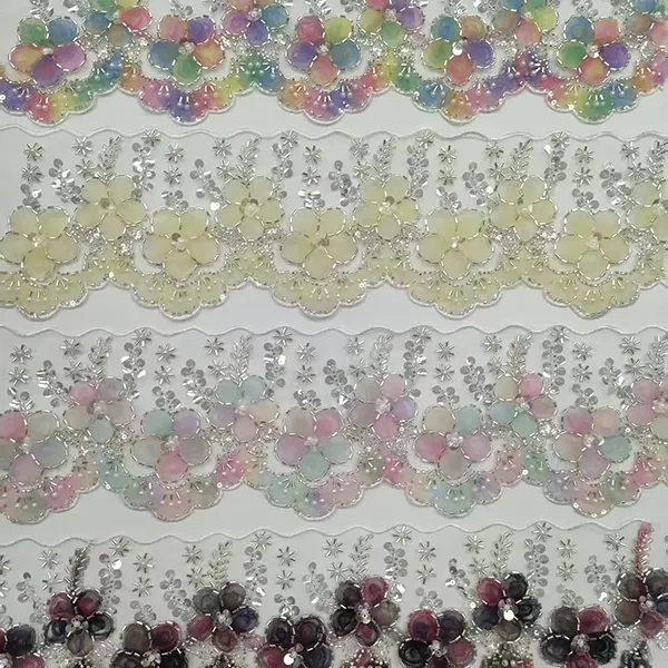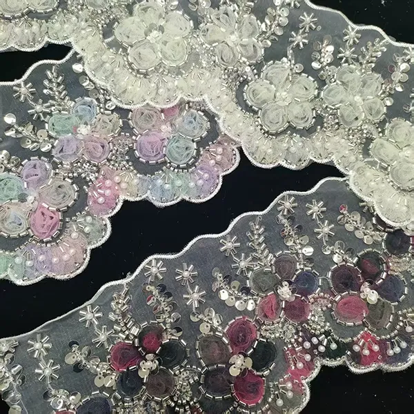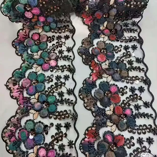 | Kaup | Mitmevärviline tikitud pits 3D võrgust lilledega, lindiga helmestega toru vöötkoodi tikandiga pits | ||