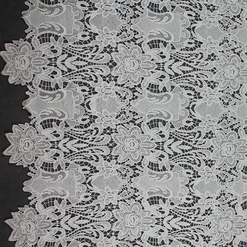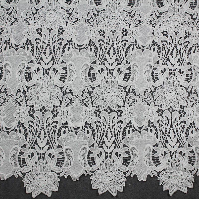 Polüester tikkimisega silmkoeline tüll võrgusilma kangas valgus, hingav, peene kolmemõõtmelise tikandi ja elastsusega, sobib eritellimusel valmistatud pulmakleitidele, õhtukleididele, tantsukleididele ja tipptasemel moele